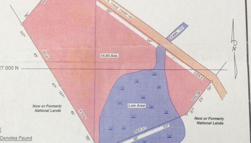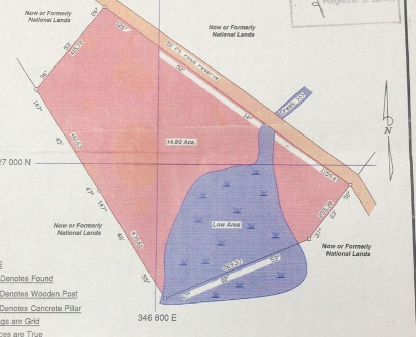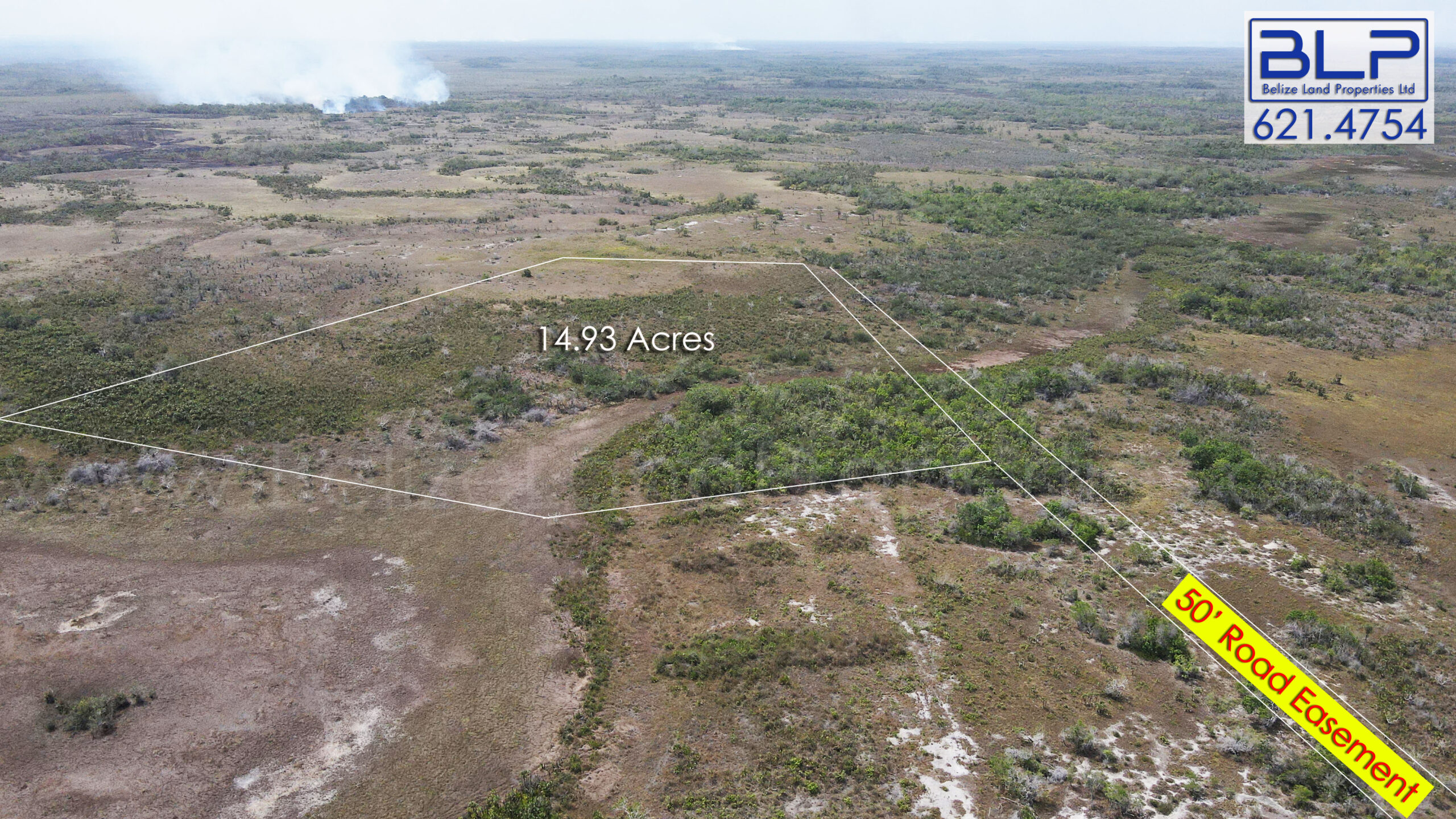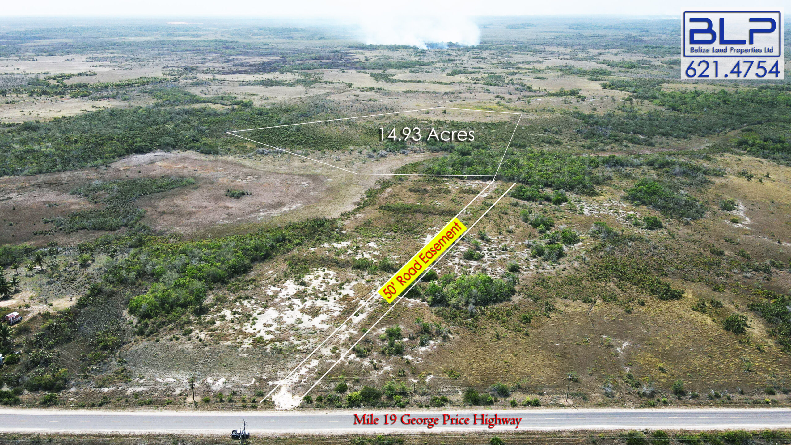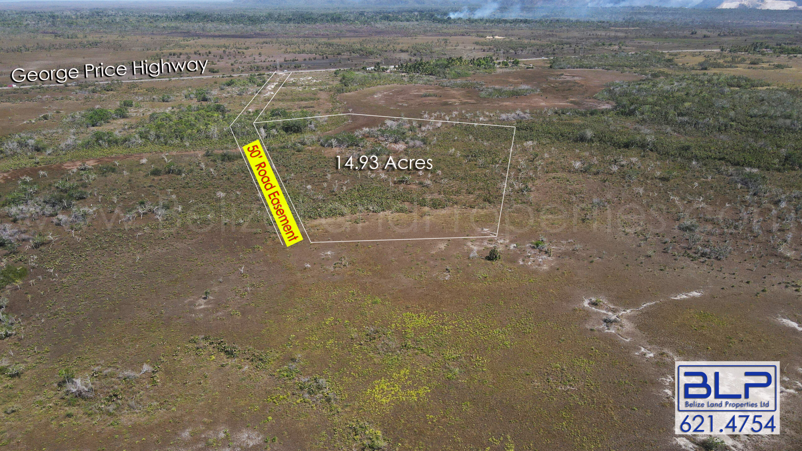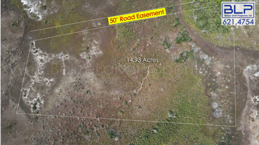 The 14.93-acre property is approximately 1,000 feet off the George Price Highway but has a 50-foot road easement.  Notably, the 50-foot road easement provides direct access to the highway.  However, the road easement needs to be built.