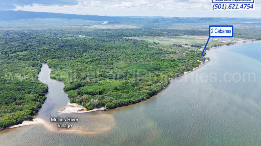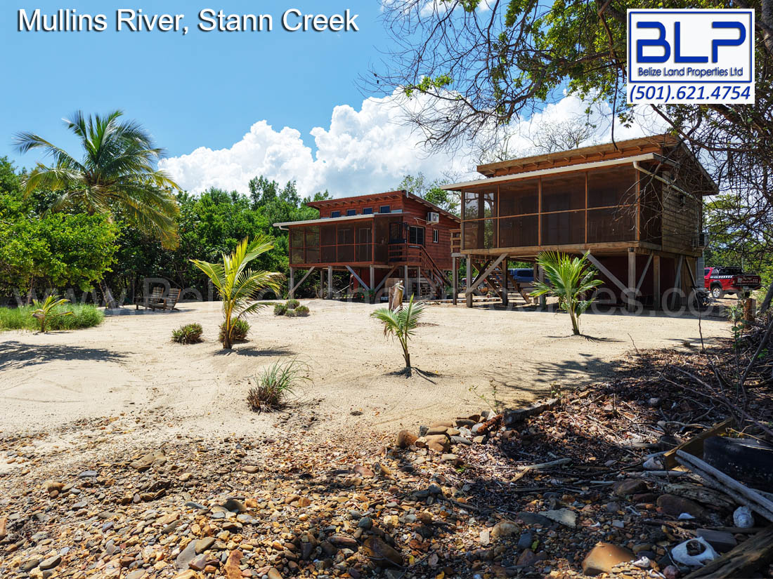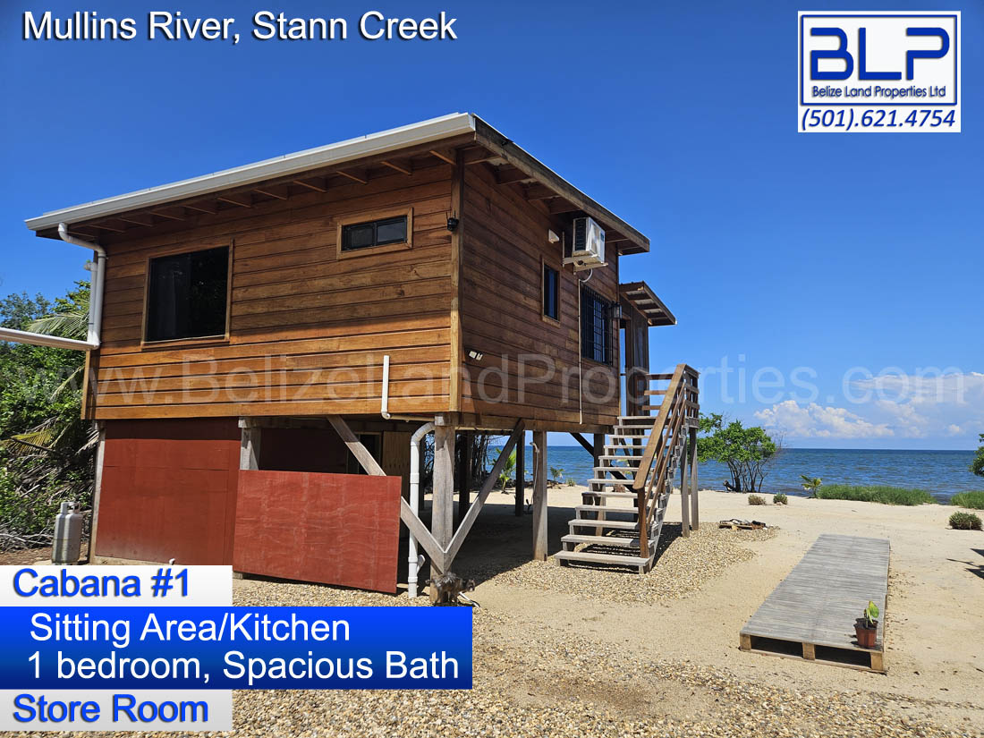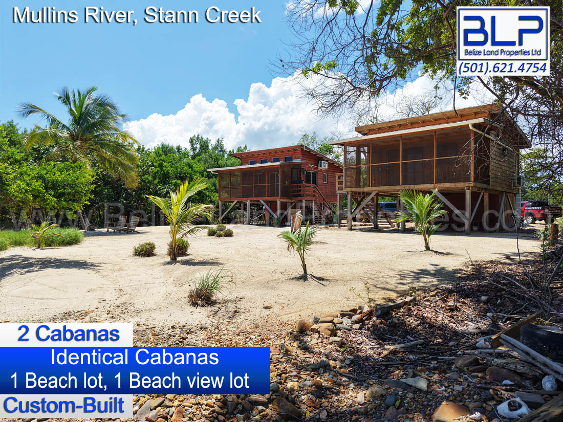 2 beachfront cabanas for sale along the coast of Mullins River in the Stann Creek District, Belize.  Belize real estate and properties for sale.