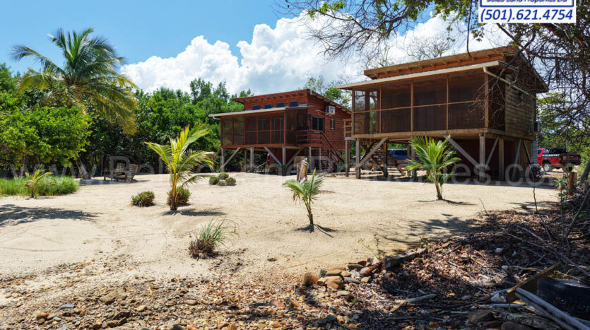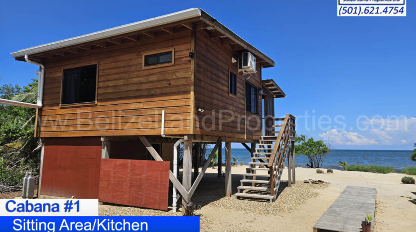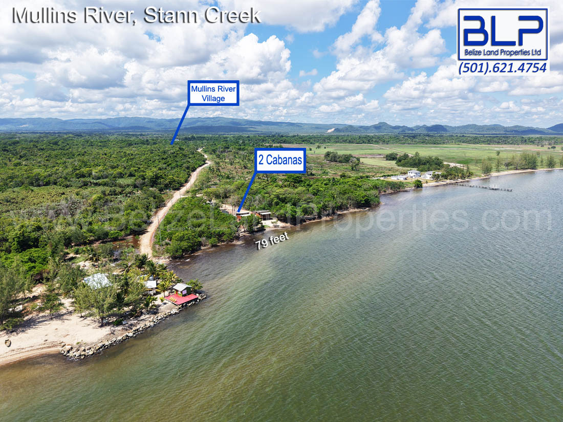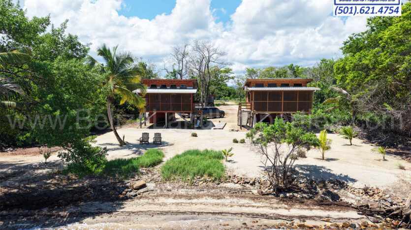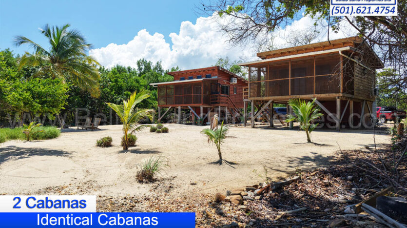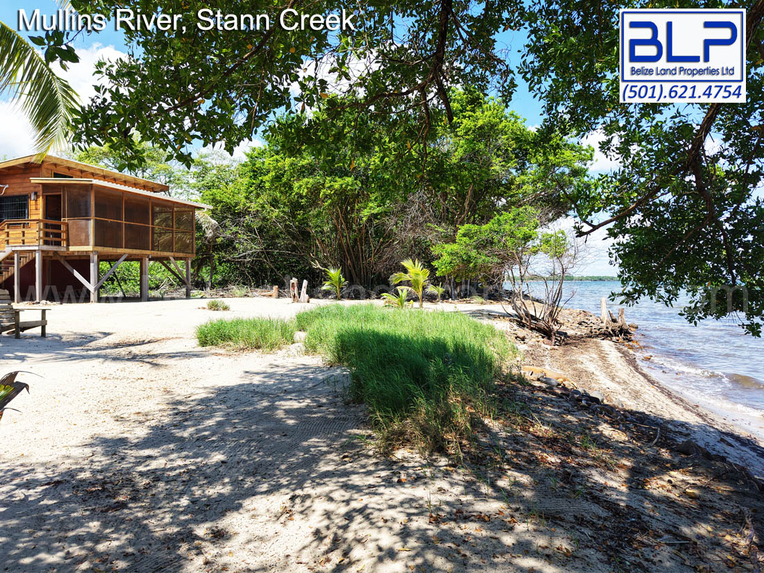 2 beachfront cabanas for sale along the coast of Mullins River in the Stann Creek District, Belize.  Belize real estate and properties for sale.