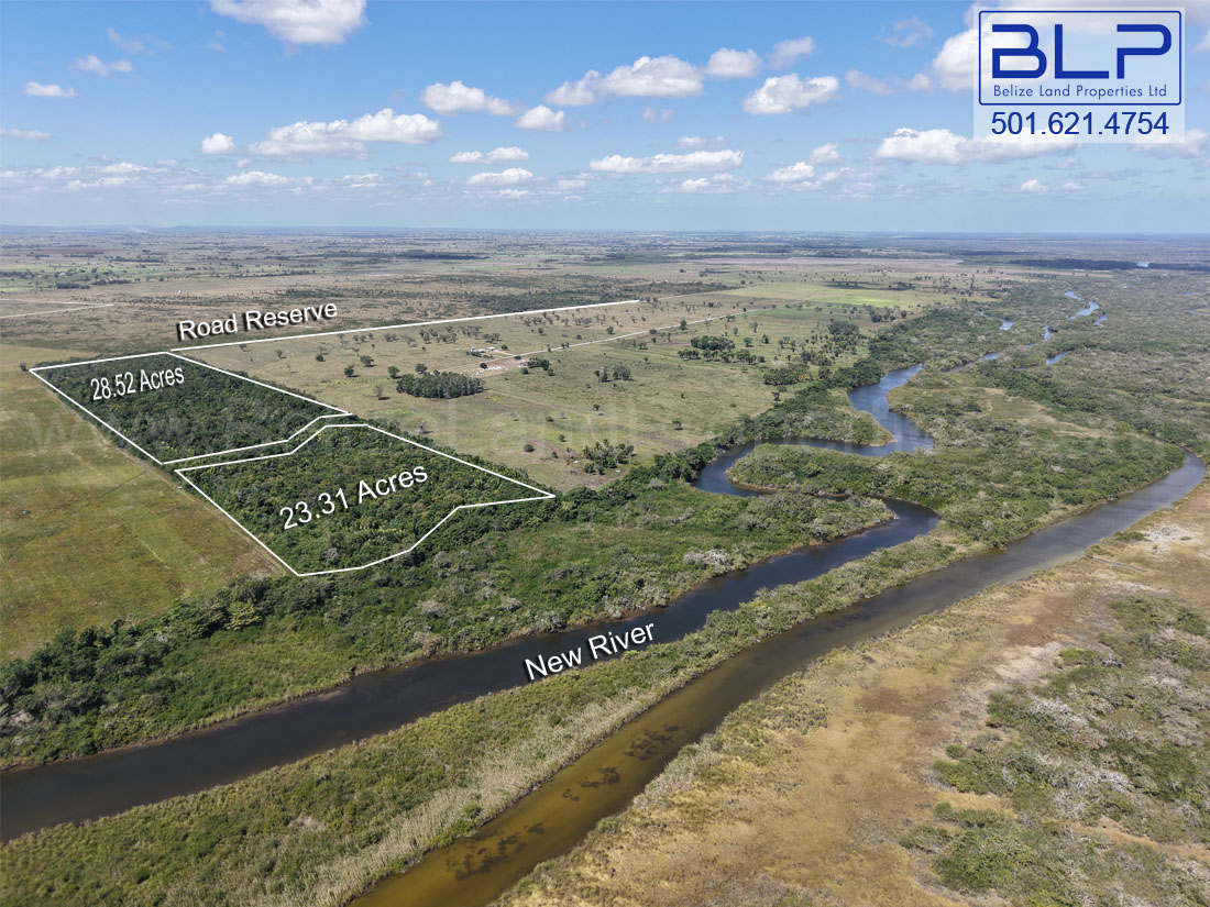 (Note that while the land survey typically borders the water to the 66-foot public reserve along the New River, a reserve appears to occupy a larger land mass in this specific area. This property maintains its direct riverfront status unless the Government of Belize has formally privatized that unusually large reserve area on the riverbank.)