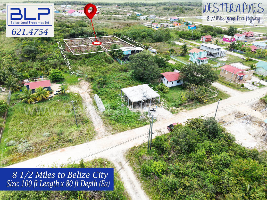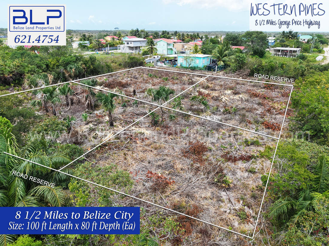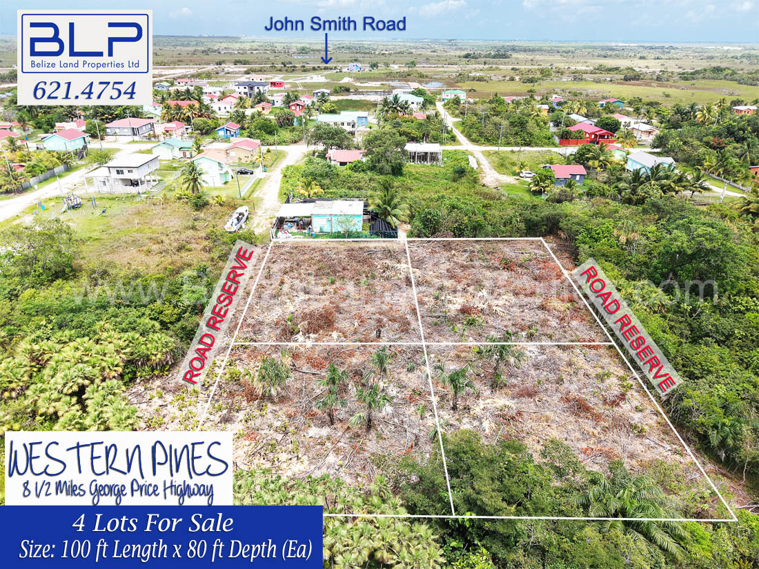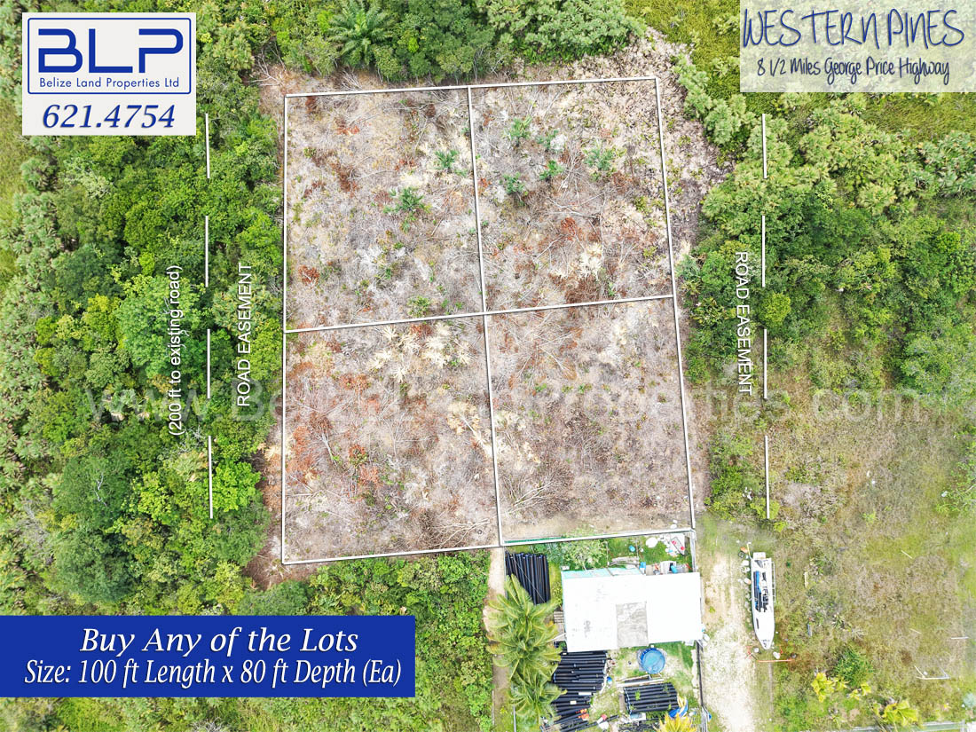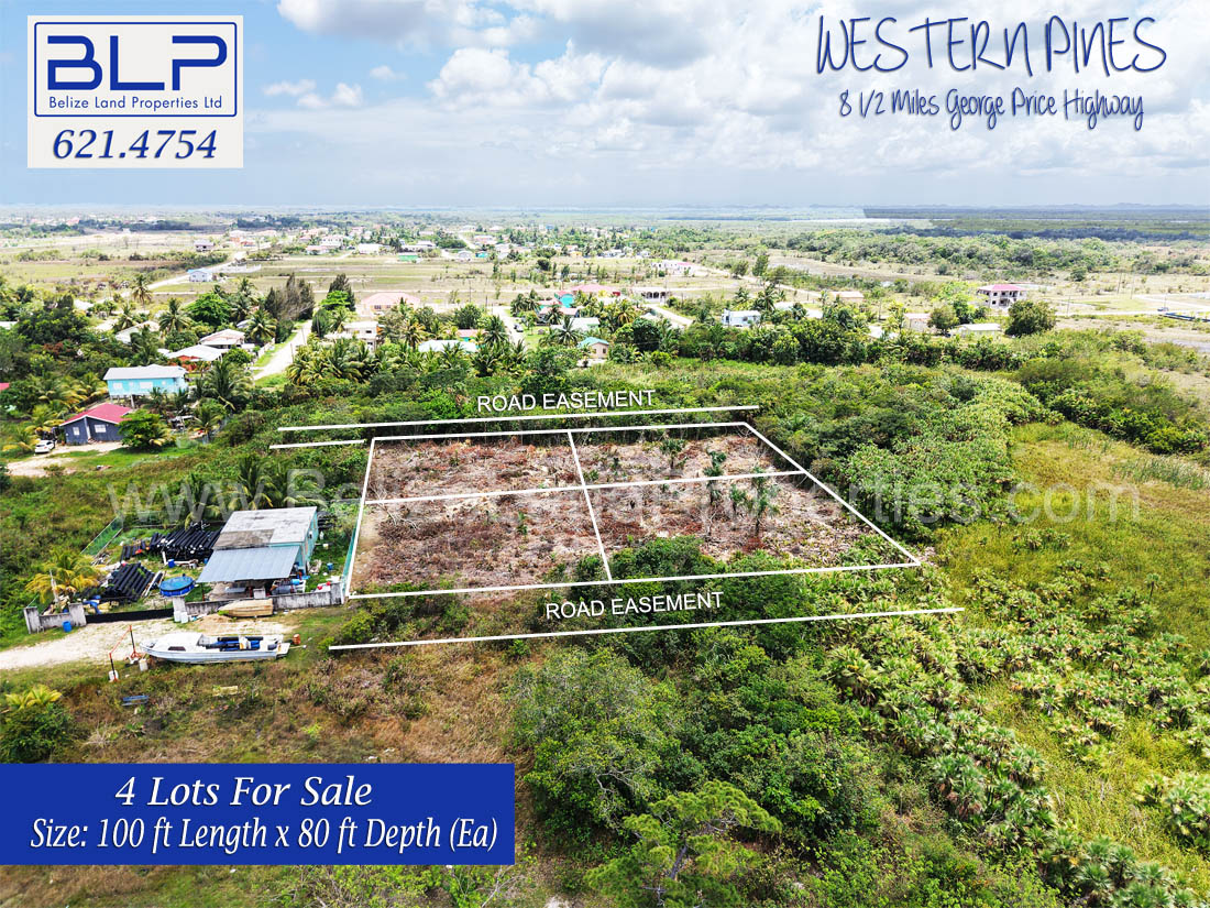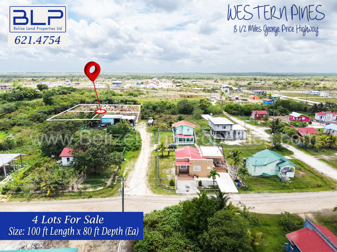Are you looking for affordable land for sale in Belize? Discover these four adjoining residential lots located in the peaceful community of Western Pines, situated at Mile 8.5 on the George Price Highway in the Belize District.